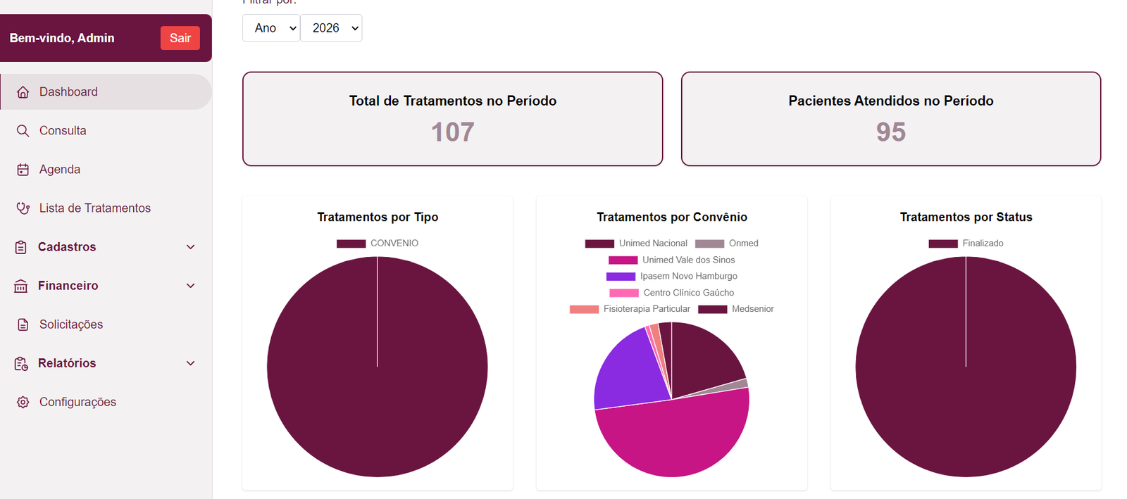 Atende ambos. O sistema permite controlar convênios, coparticipações, sessões, valores e repasses de forma organizada e transparente.
