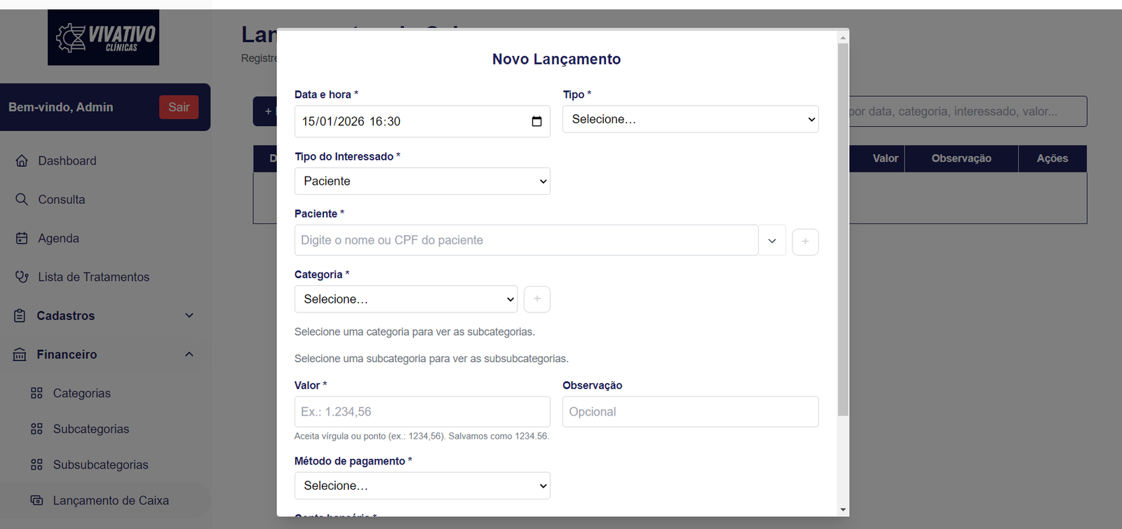 O Vivativo Clínicas é uma plataforma de gestão integrada para clínicas de saúde. Centraliza agendamentos, financeiro e atendimentos em um único sistema, trazendo mais controle, eficiência e previsibilidade para a gestão.